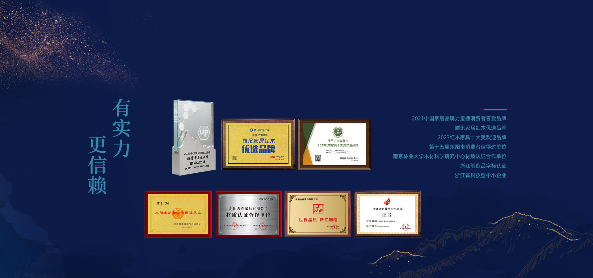 自2006年創立以來,古森紅木的故事,便由專業一詞開篇。在領軍企業家吳飛陽的帶領下,深專技藝、嚴苛品質,納古迎新、森羅萬象,成就傳世精品無數,以專家實力續寫輝煌。專注贏得聲譽、質量保證效益,是古森紅木的真實寫照,古森紅木將始終踐守承諾,在美好生活的道路上砥礪前行,持續以一流的質量、工藝、設計和服務不斷地領跑行業,為消費者帶來好的家具產品,為紅木行業的發揚光大增光添彩!